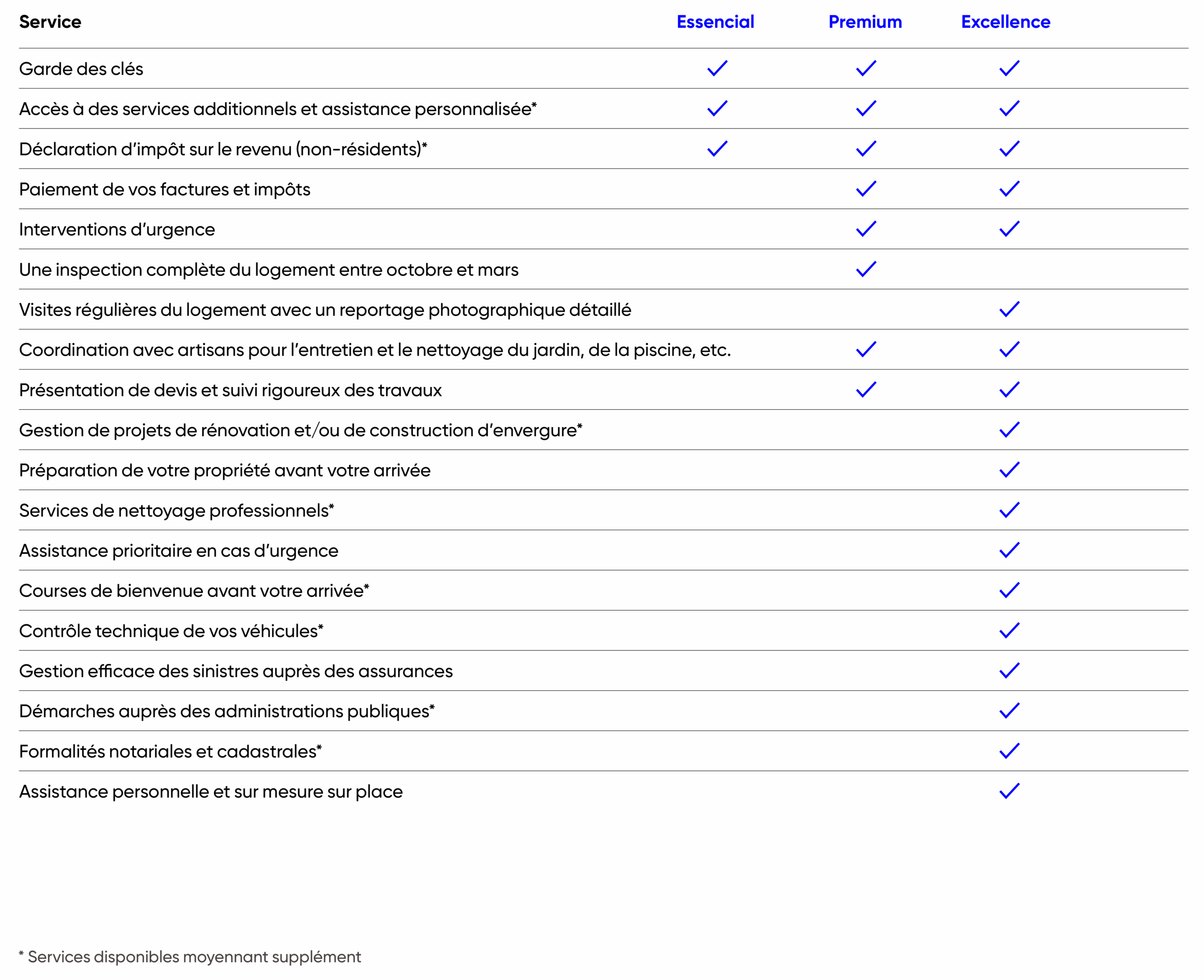 Nous avons conçu trois forfaits afin que vous puissiez choisir le niveau d’attention et de prestations dont vous avez besoin pour votre résidence secondaire.